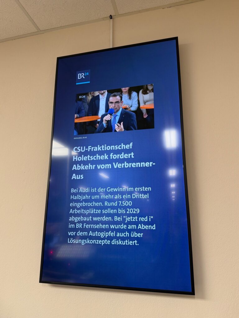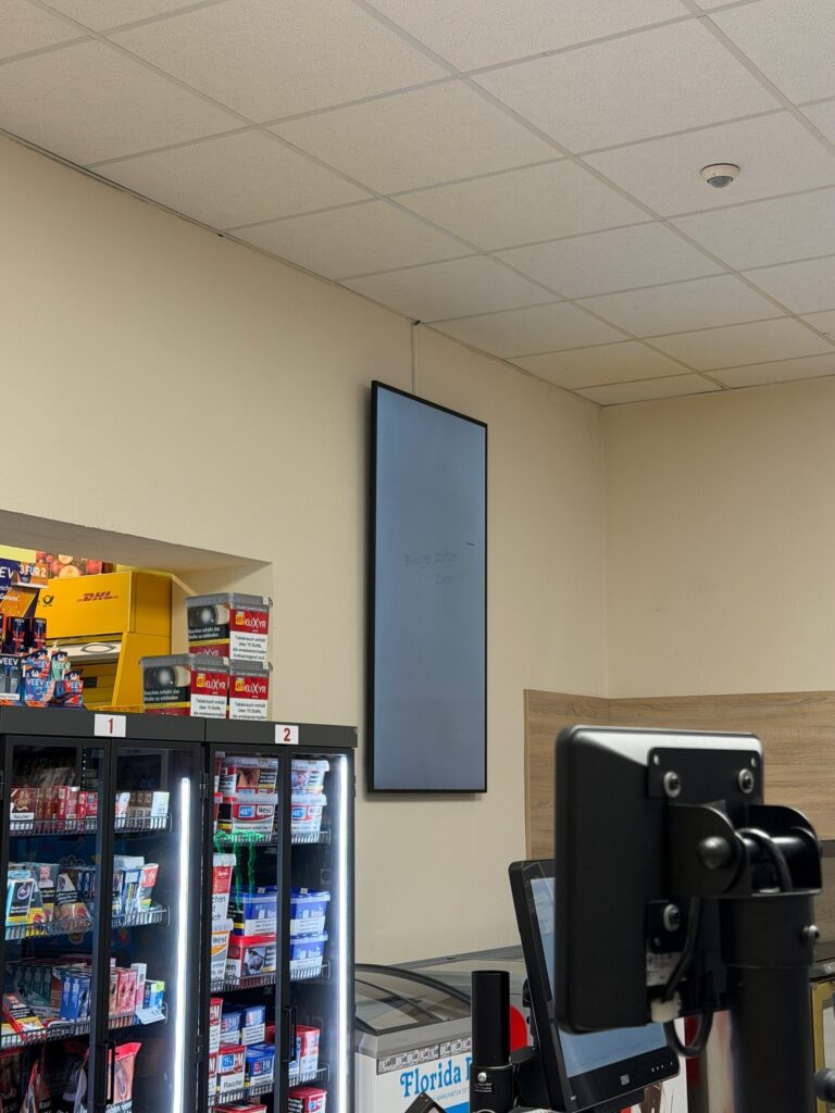 Gestern wurde ein 65″ Monitor im Kassenbereich unseres CAP-Markts zusammen mit der Fa. inszenium aus Plauen installiert. Die Fa. inszenium ist auch der technische Dienstleister für den Betrieb.